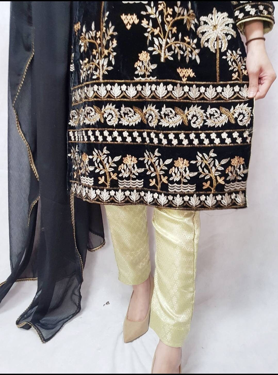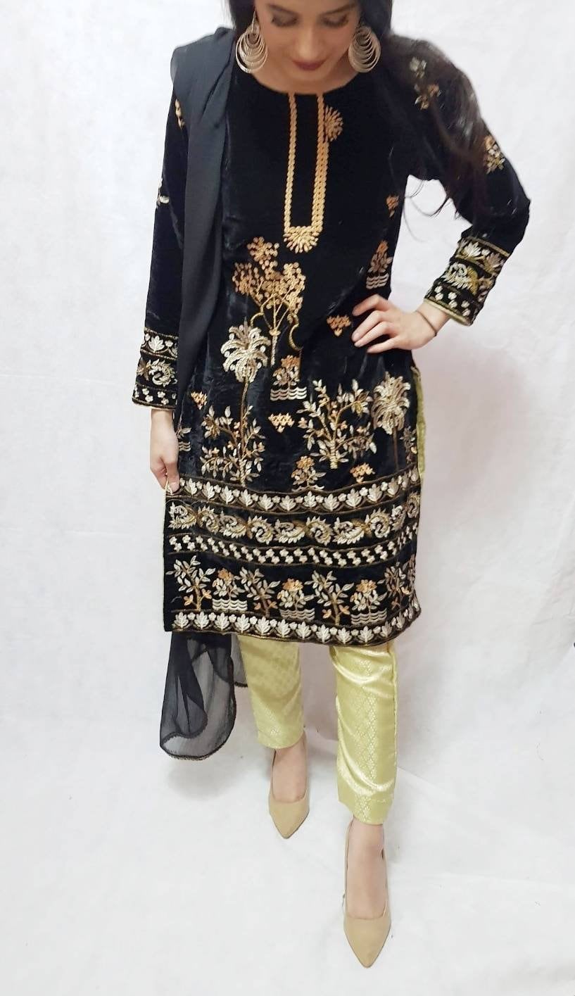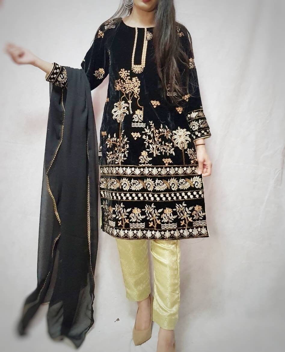 beautifully stitched velvet dress with embroidery in a stunning black colour comes with