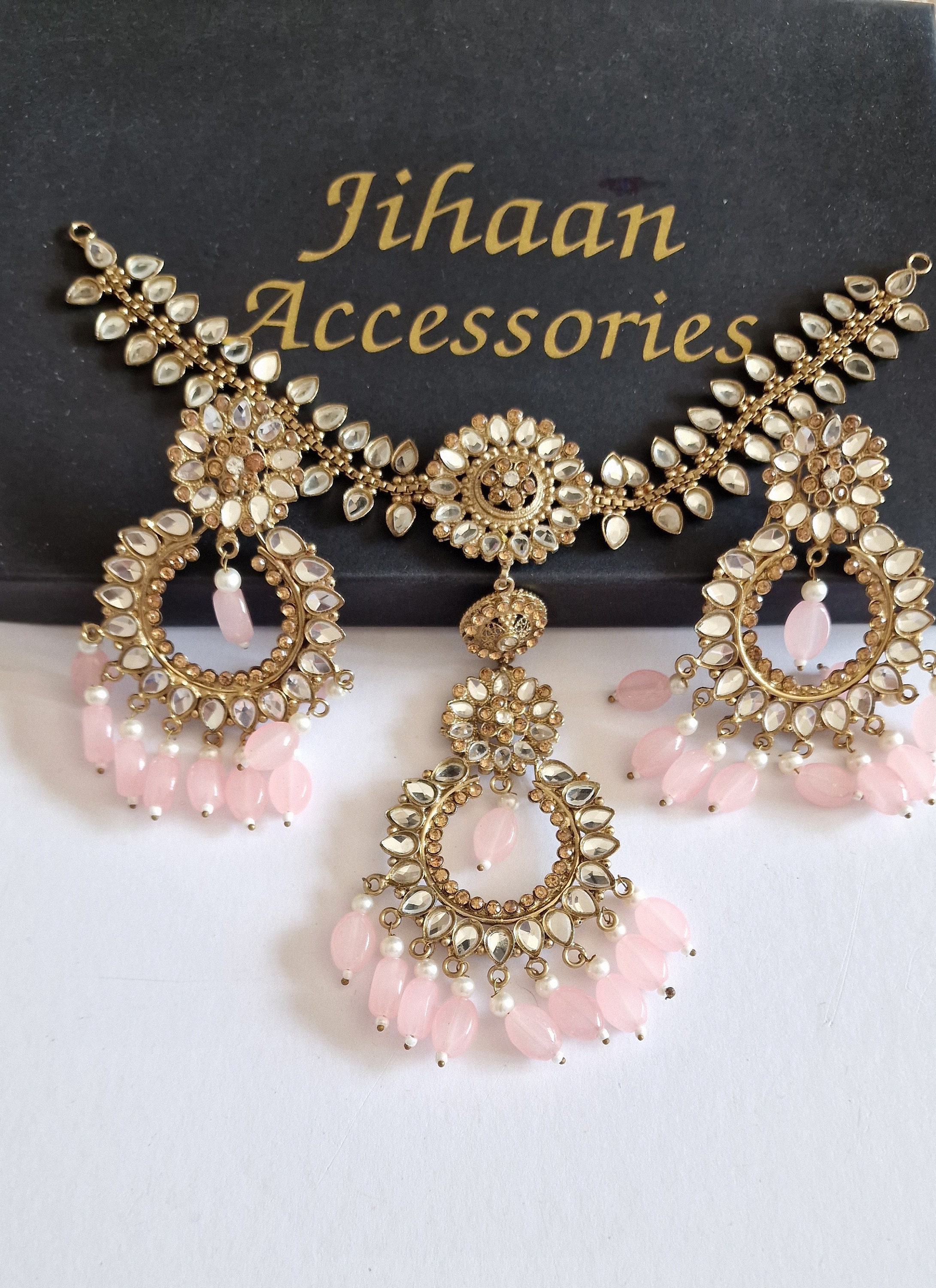 INDIAN JEWELRY, Earrings, Pakistani Jewellery, Wedding tikka, Jhumka, Gold matha patti