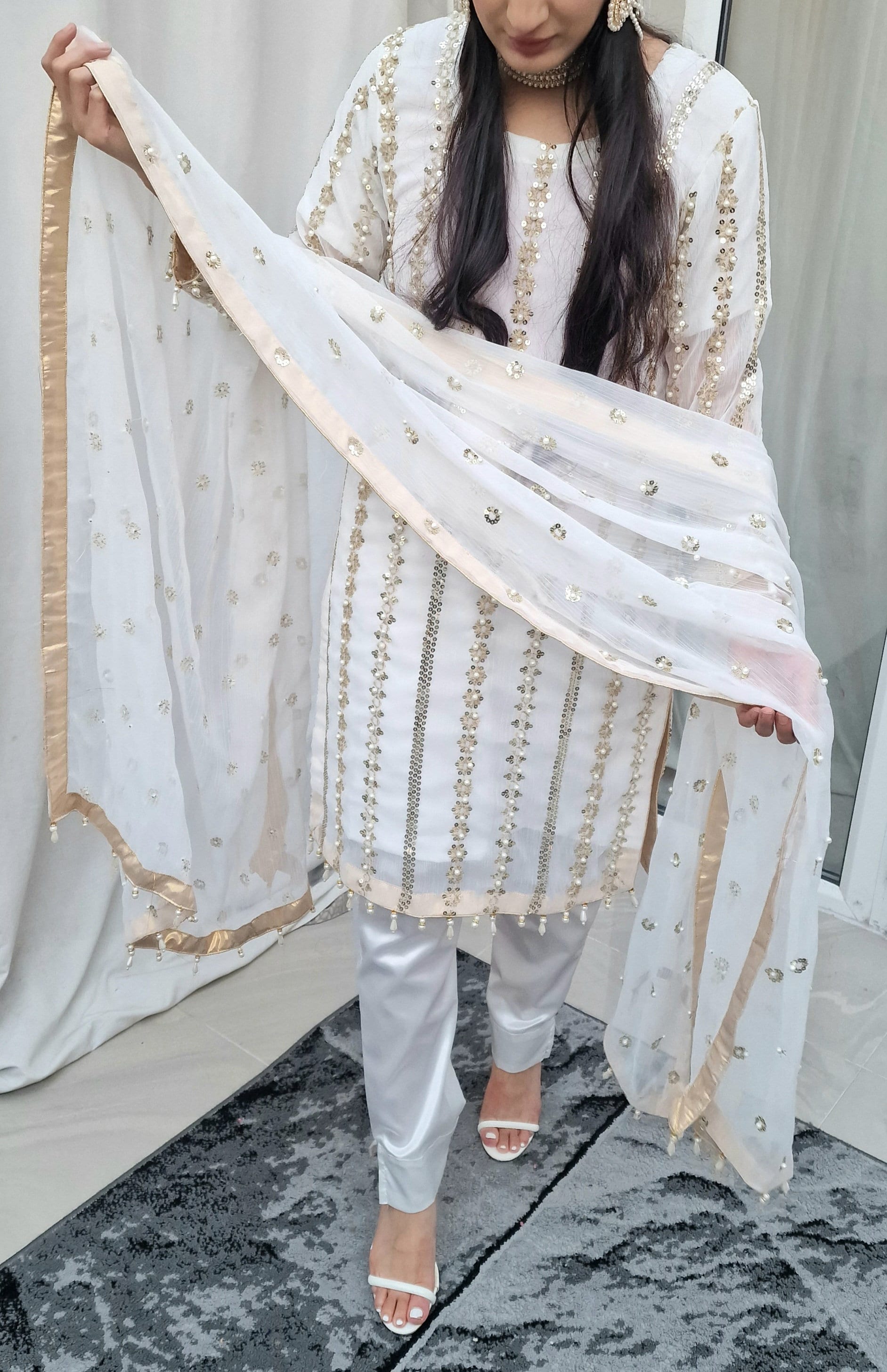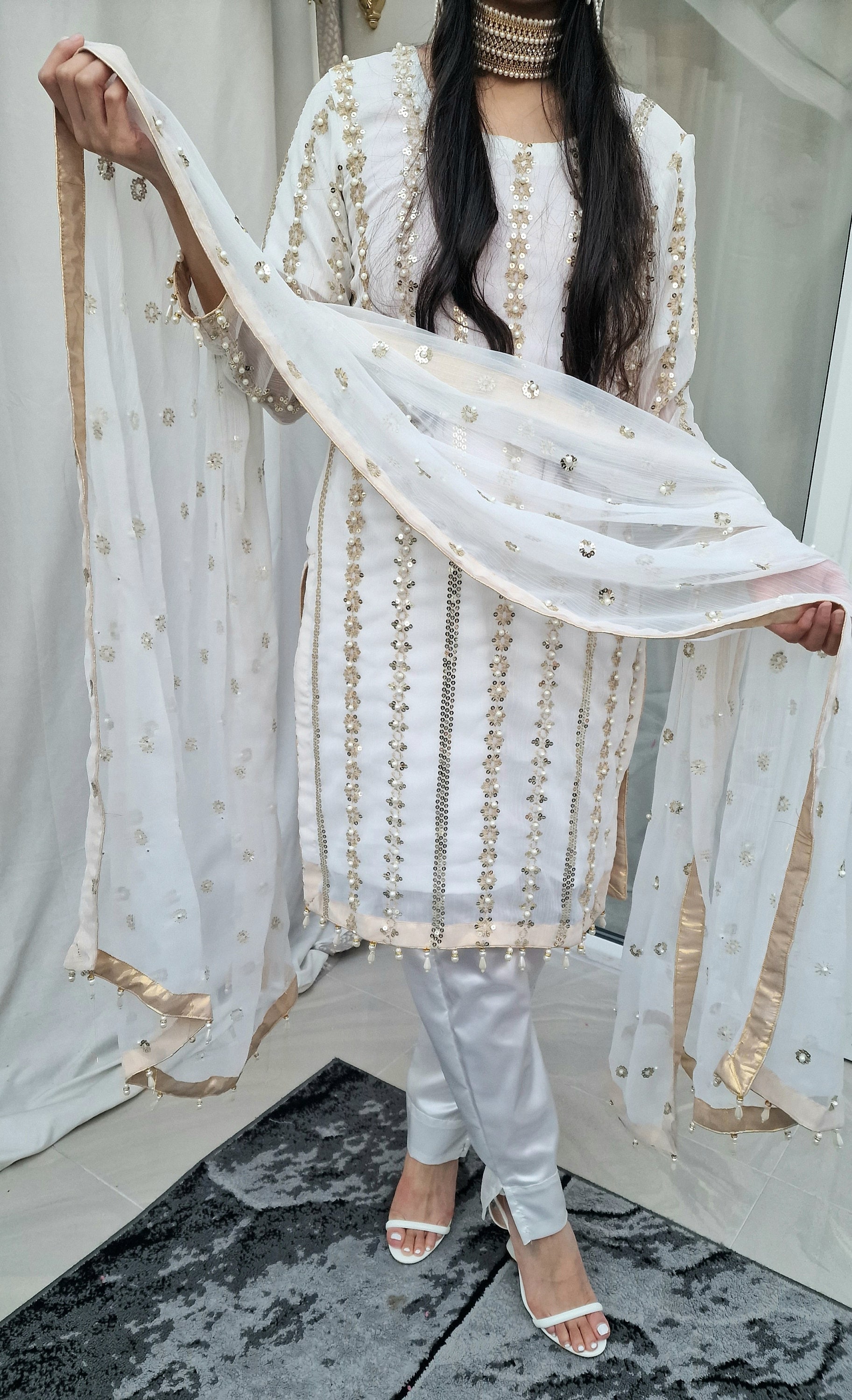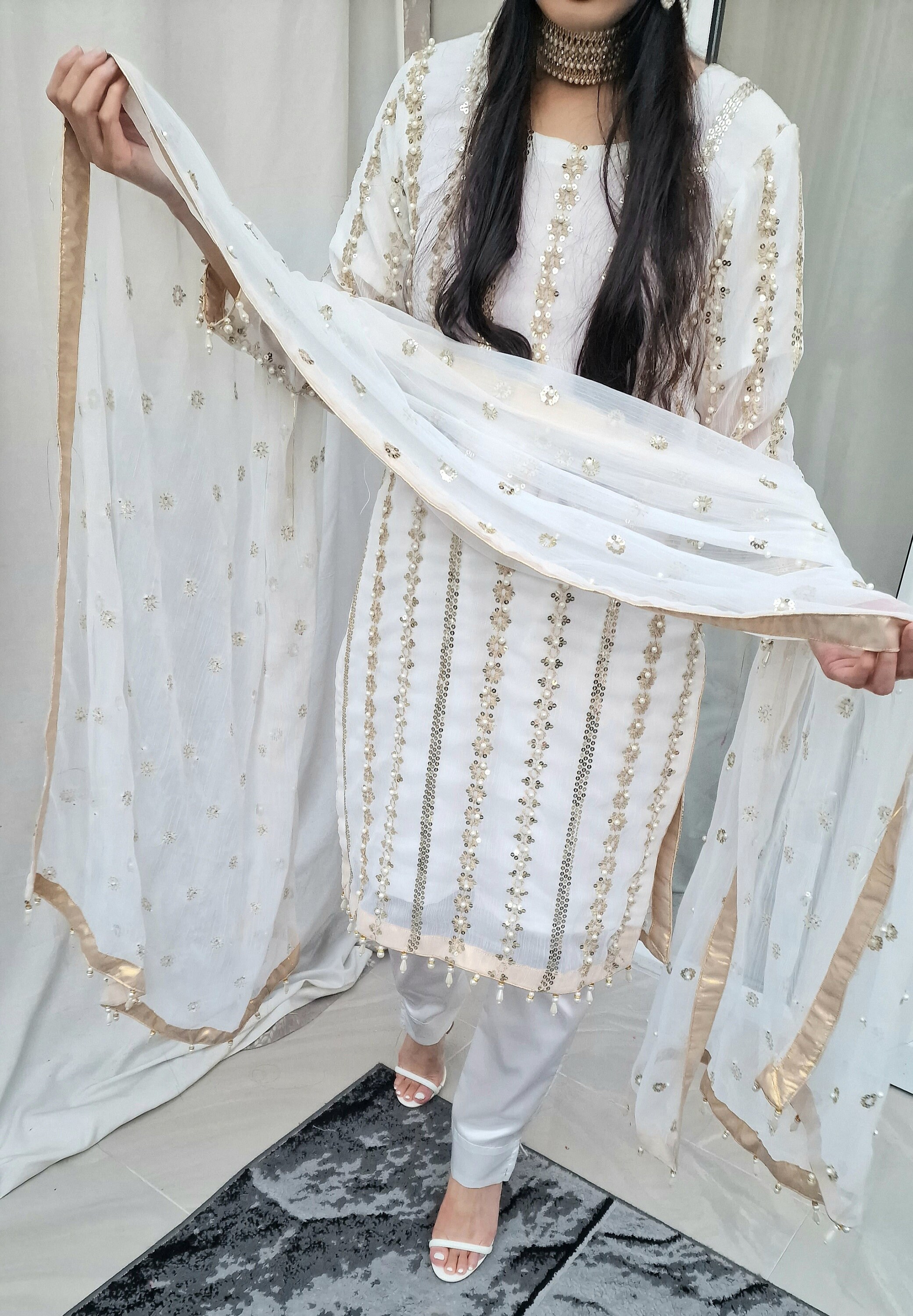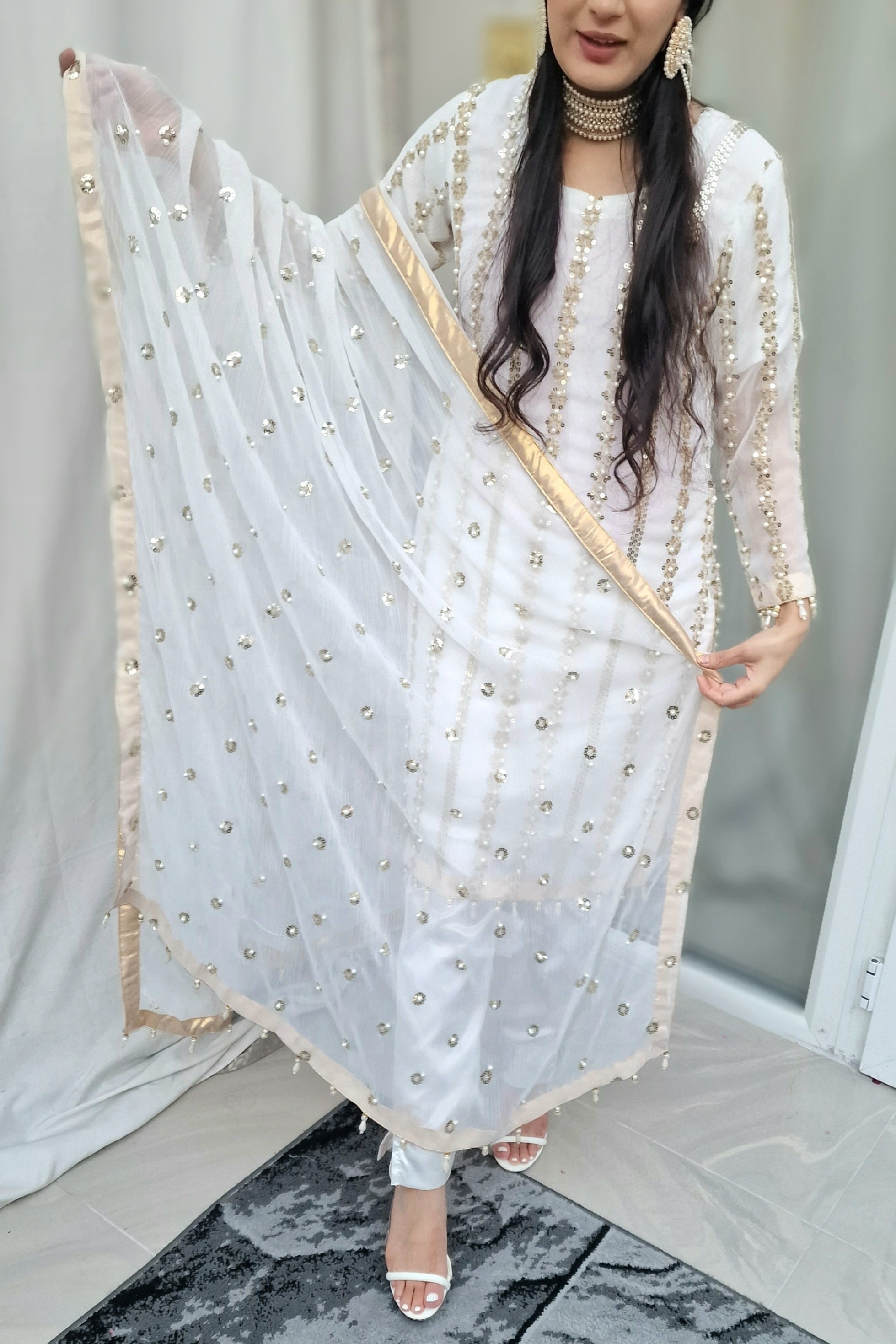 PAKISTANI DRESS, salwar kameez, white indian suit, Pearl Partywear