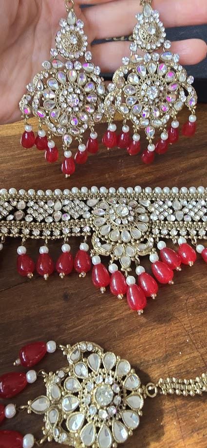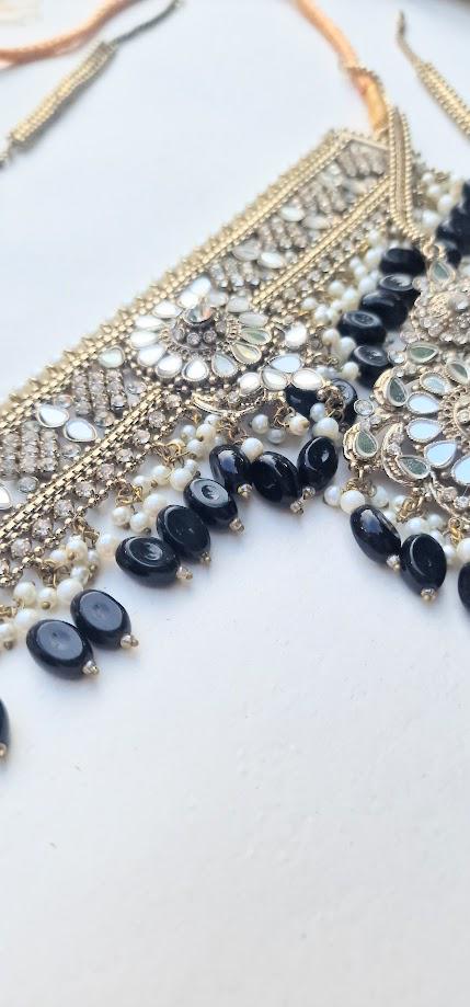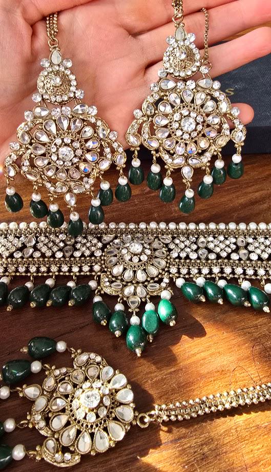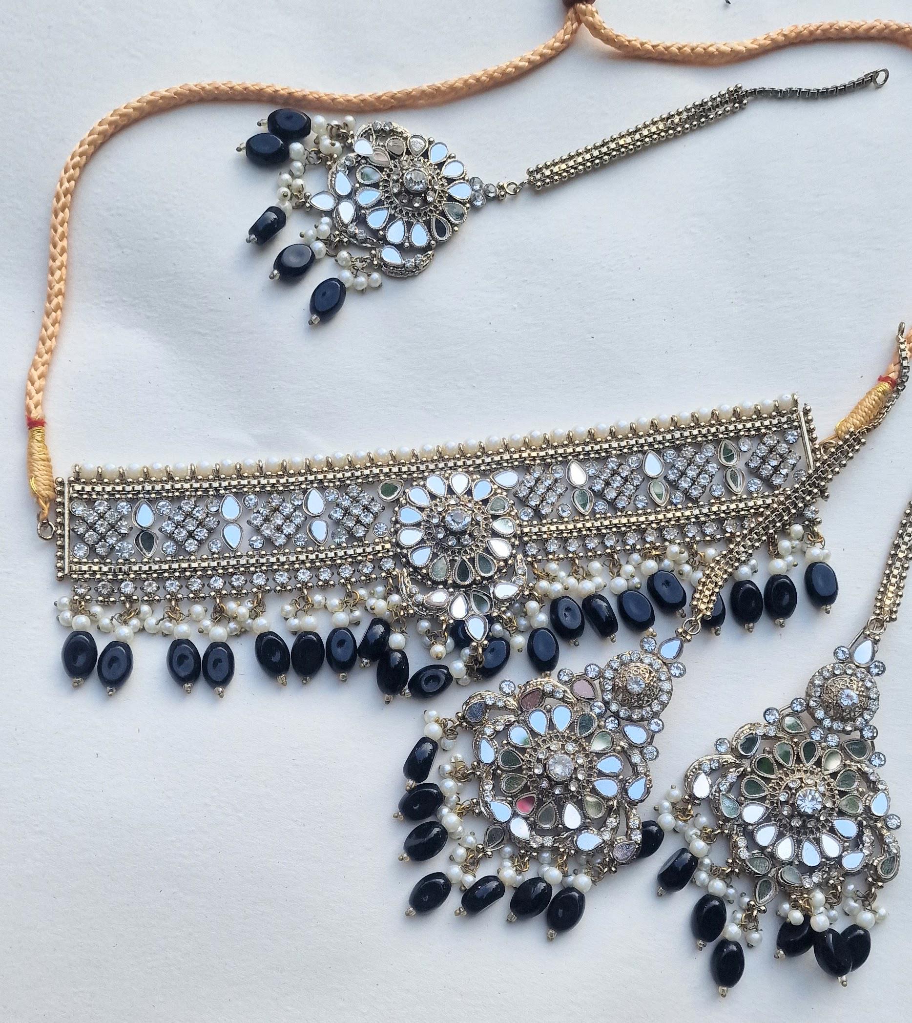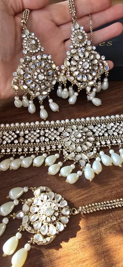 Antique Gold Indian Bridal Jewelry Set: Choker, Earrings & Tikka