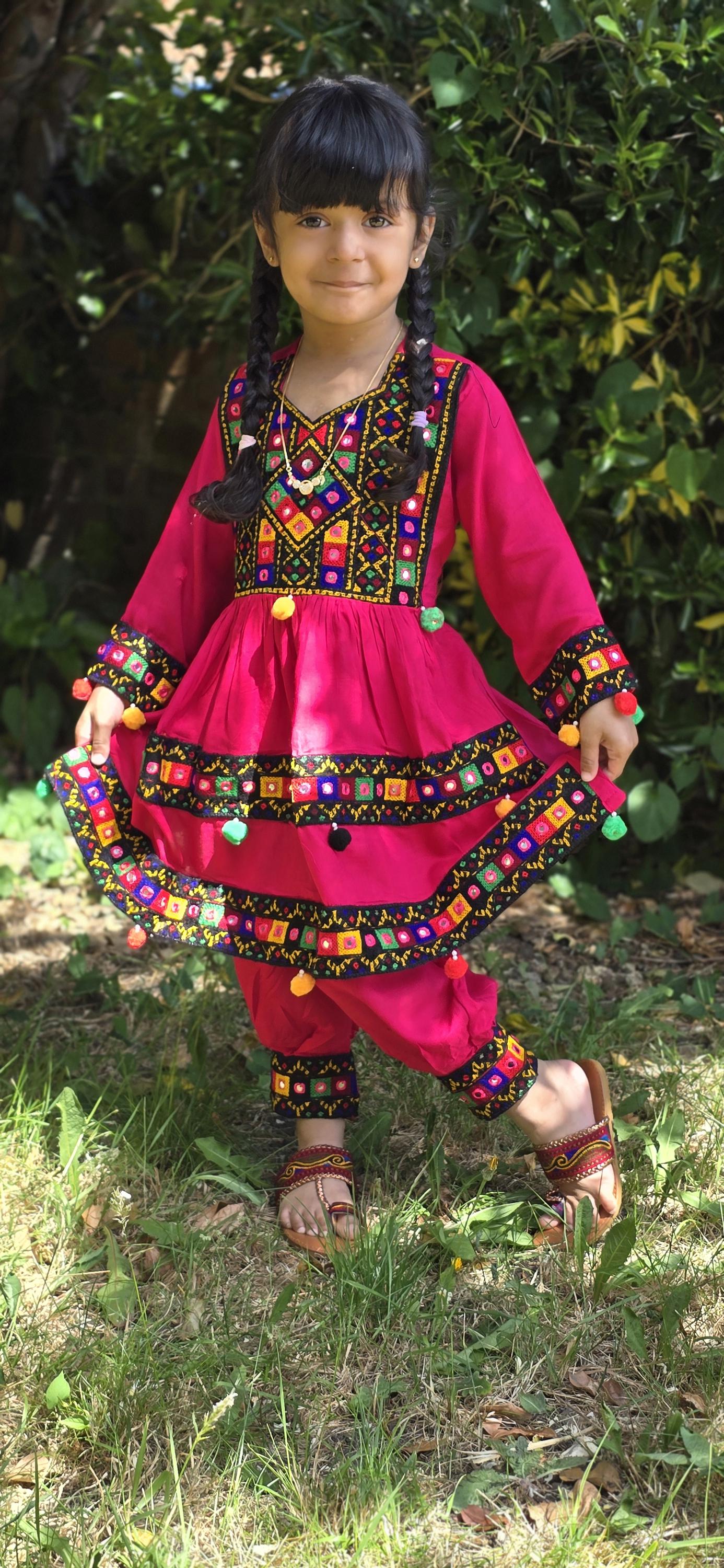 Kids' Embroidered Afghani Dress, Handmade Ethnic Frock