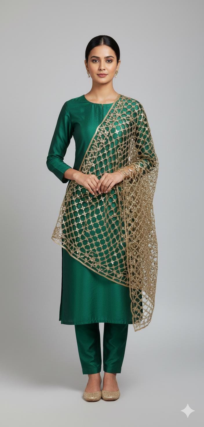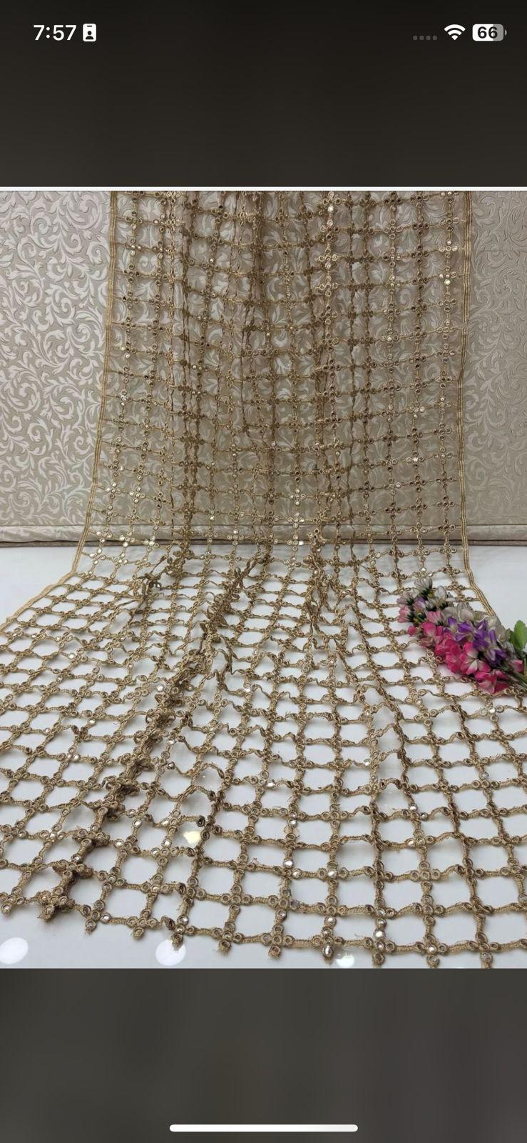 Maria was incredibly responsive and honored the date of my event in the face of third party delivery problems. I highly recommend her as a seller. The dupatta received many compliments at the wedding I attended. Note that it is not double sided and the short edges aren't finished. Given the weight and scratchiness, I recommend wearing something with enough coverage that you can pin the dupatta in a few places to avoid it falling and having to constantly readjust.