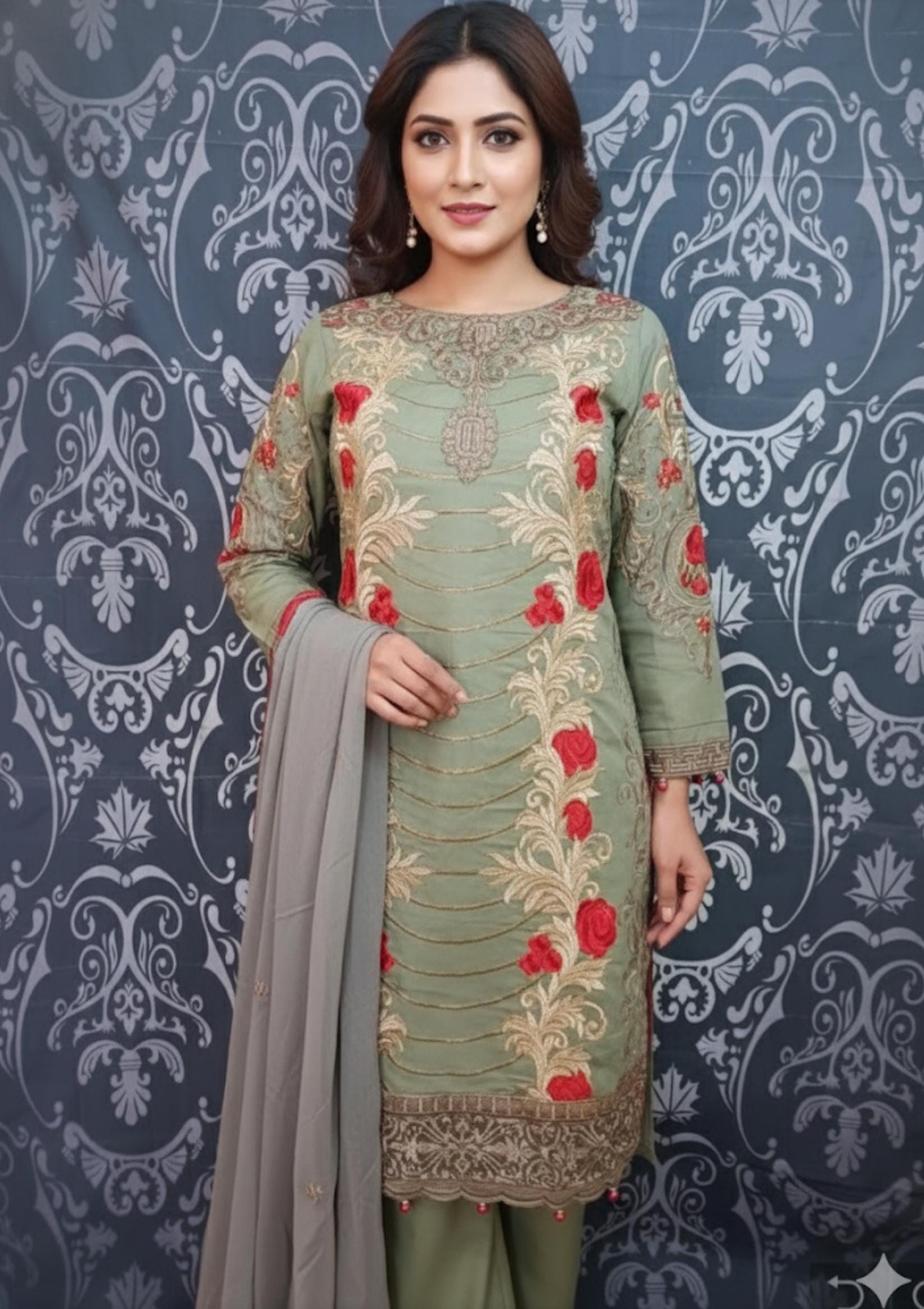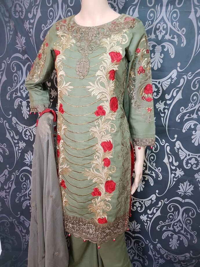 Pakistani salwar kameez Embroidered Cotton Salwar Kameez with Scarf