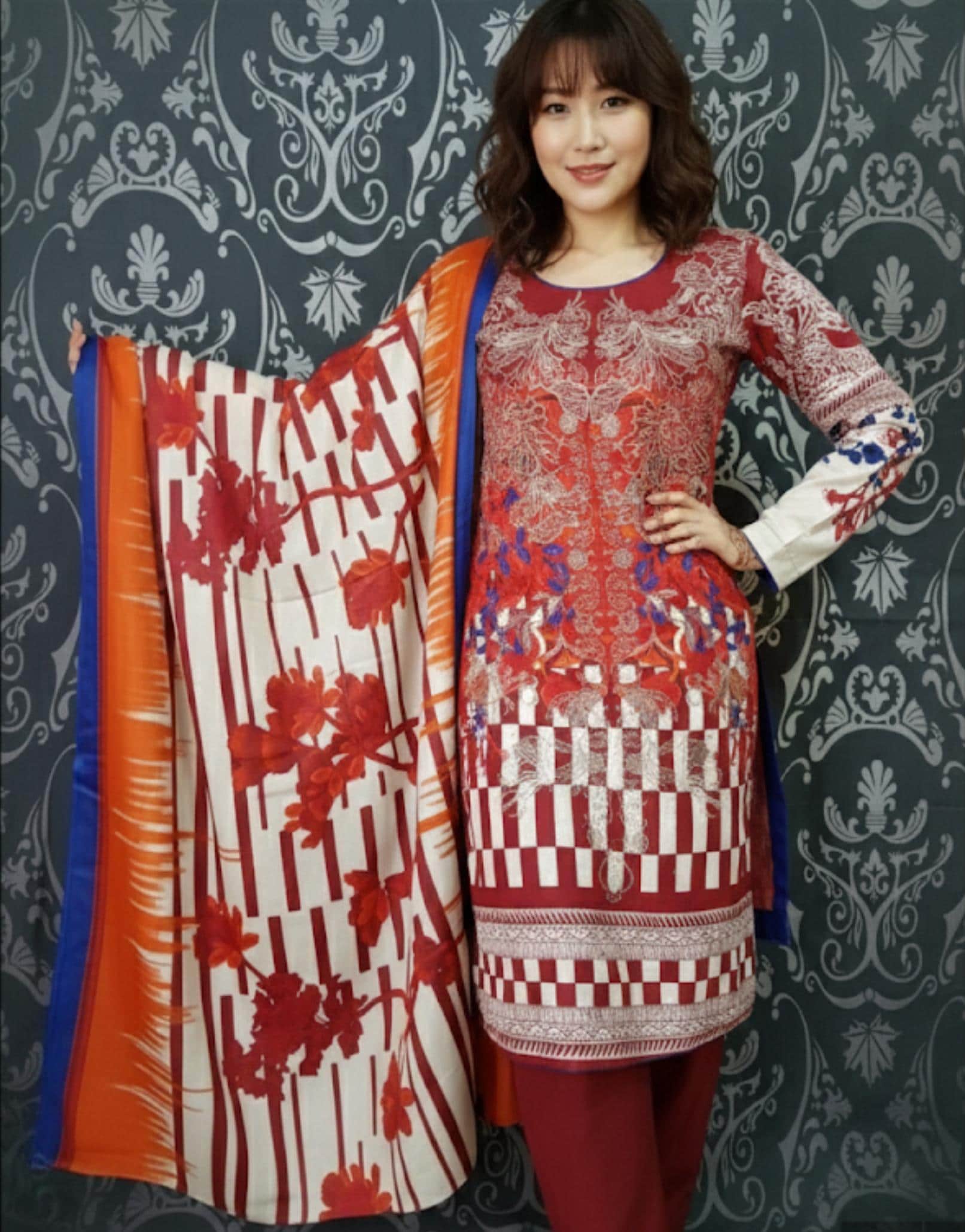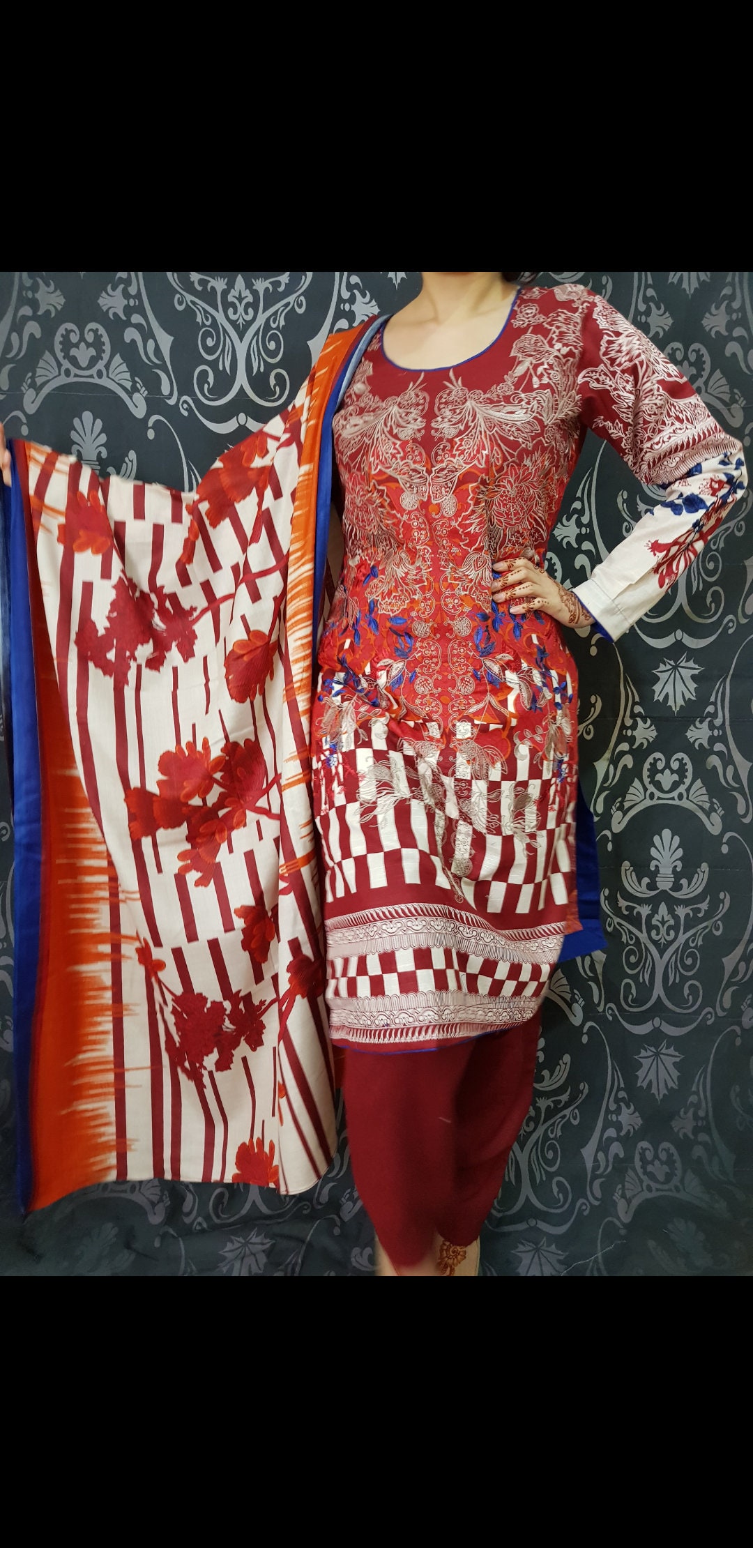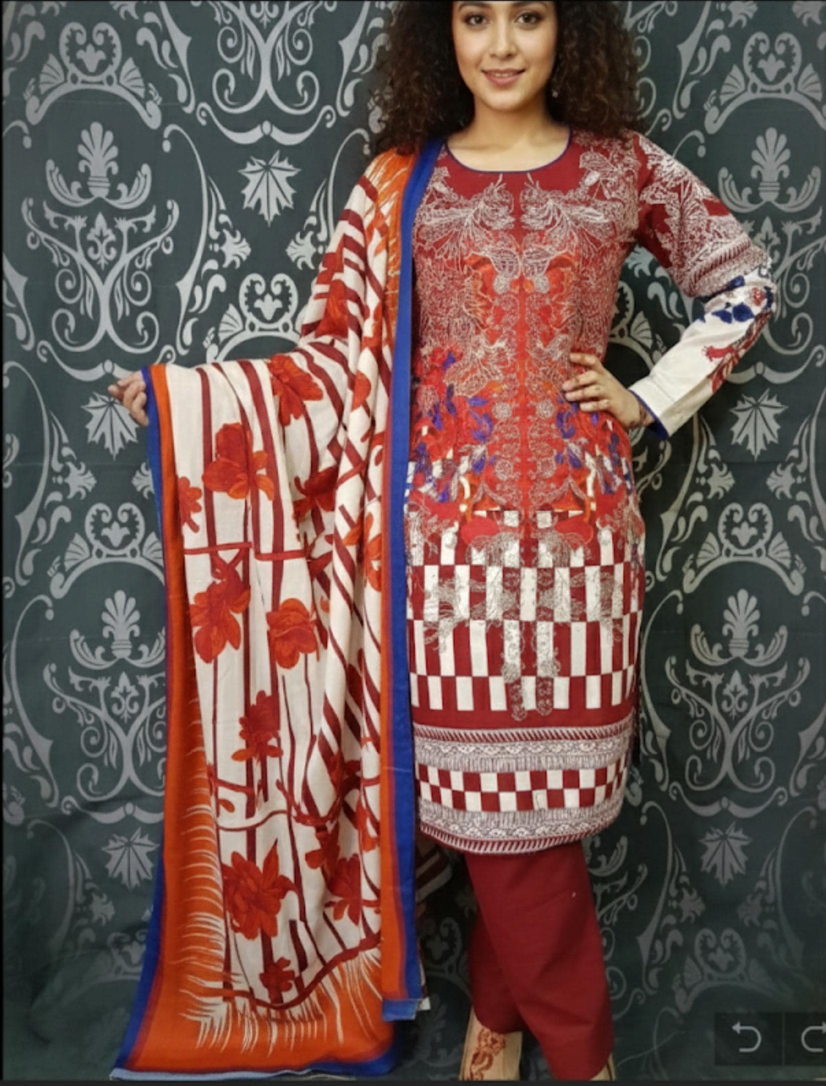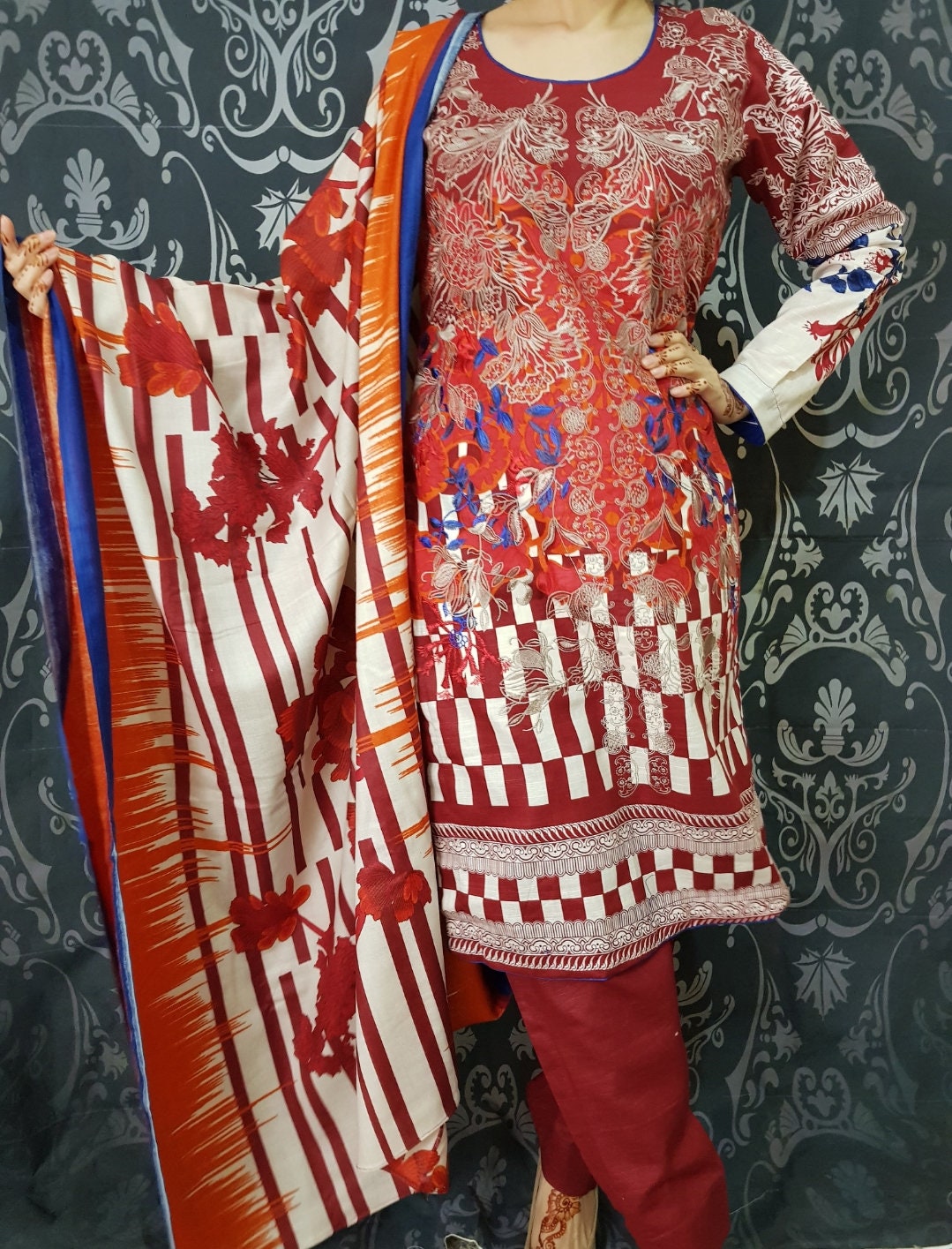 Pakistani Winter Suit Embroidered Khaddar Salwar Kameez ethnic wear red
