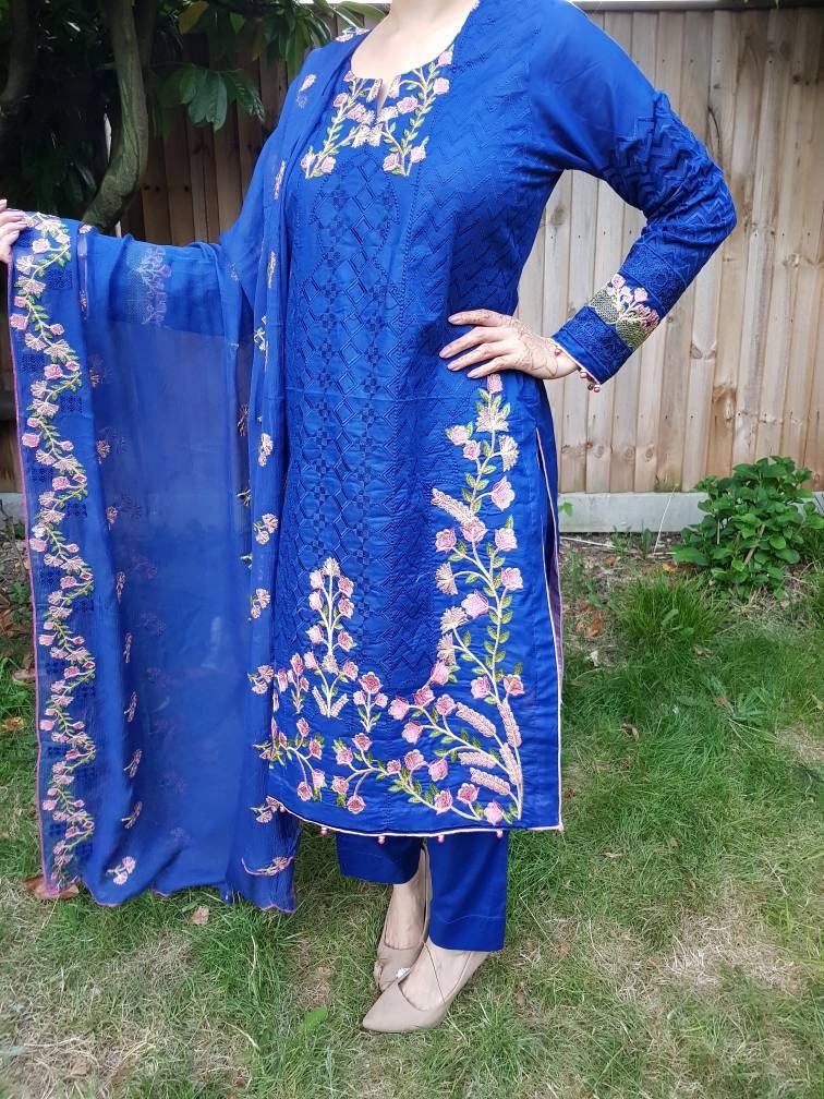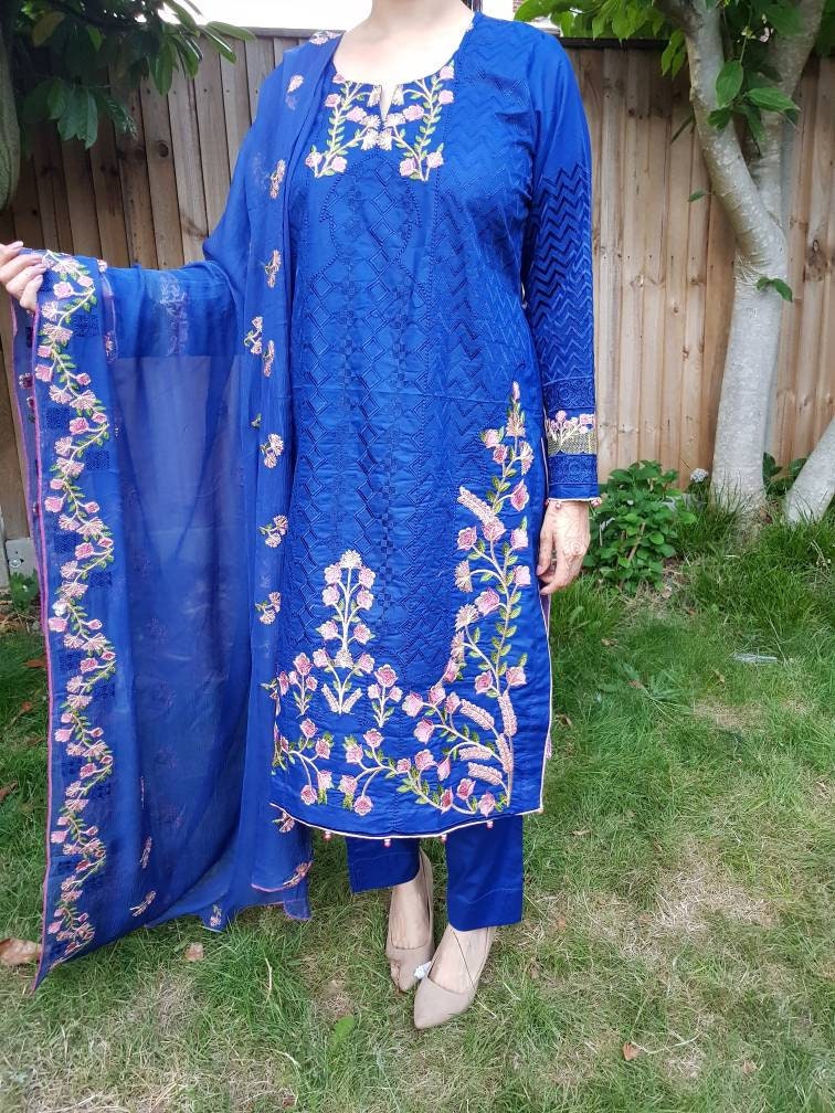 Embroidered Pakistani Salwar Kameez, Blue Lawn Suit, Ready to Wear