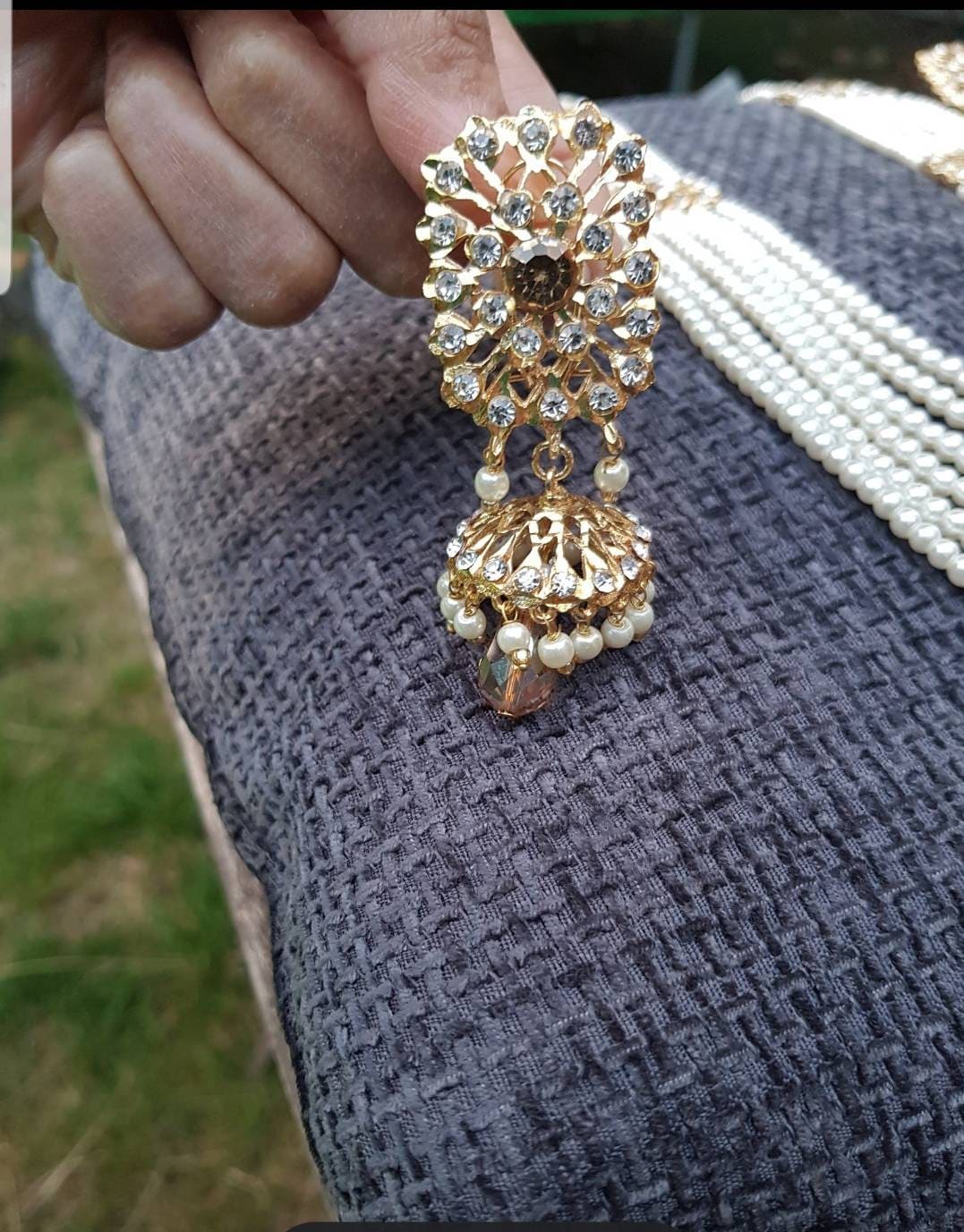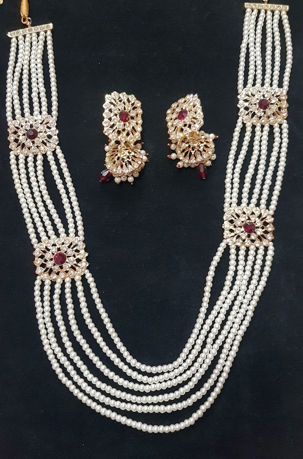 Indian Bridal Jewelry Set: Pearl Maala Necklace and Earrings