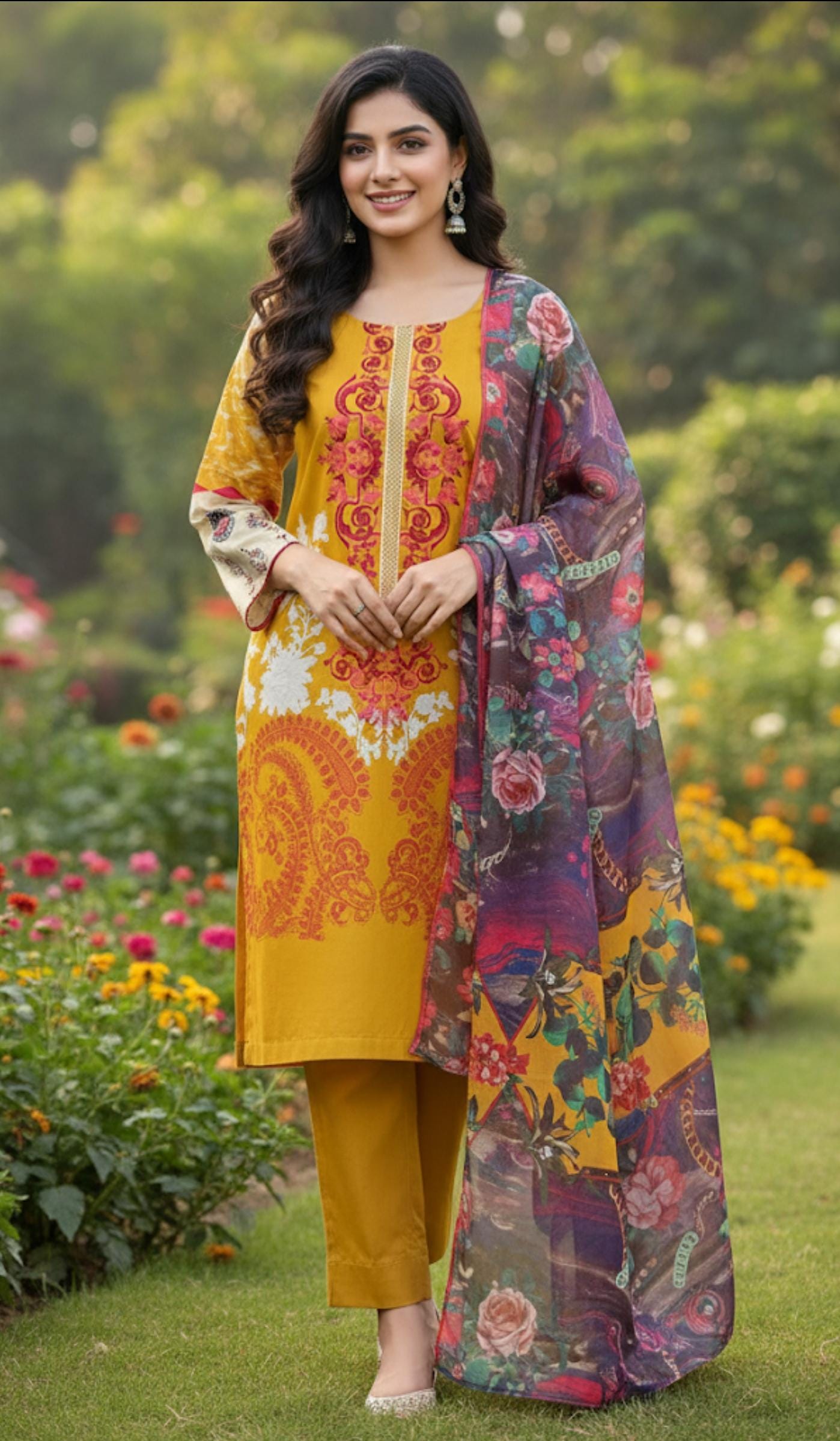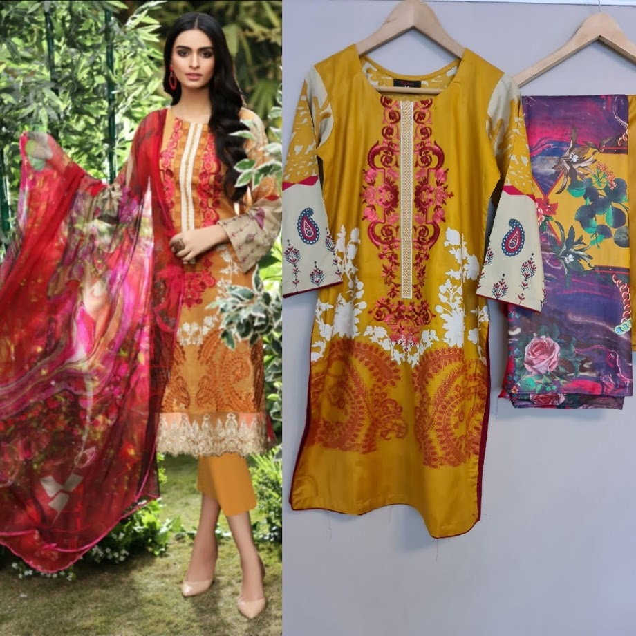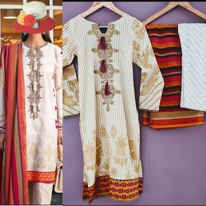 Pakistani dress summer lawn Embroidered Lawn, Readymade Shalwar Kameez ethnic wear for women chiffon duppatta