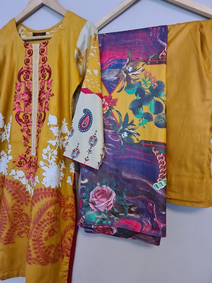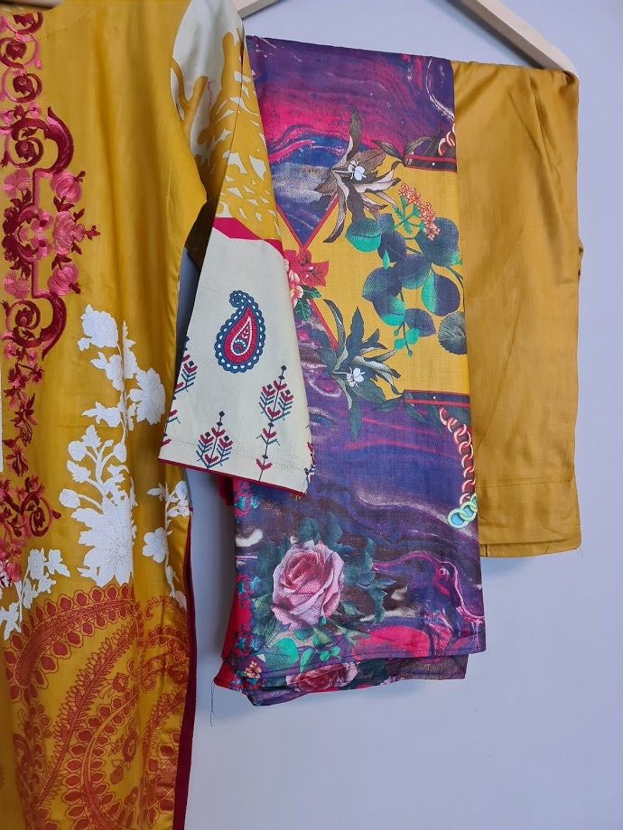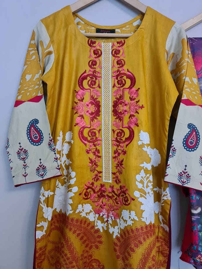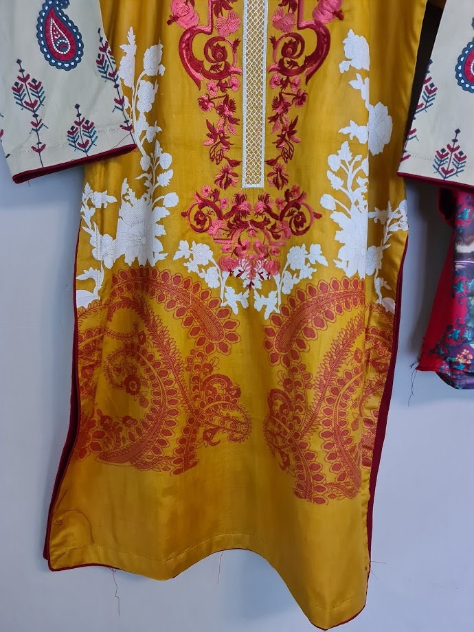 I was amazed at how gorgeous the embroidery is on this outfit!!! The prints are very bright and the color combinations are perfect and very soothing. The quality of the fabric is good and also the overall look is very appealing.