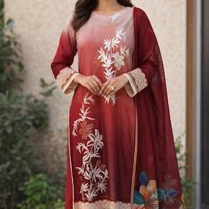 beautifully stitched PAKISTANI DRESS, embroidered kameez and scarf this indian dress is for any occassion it is readymade and available in all sizes