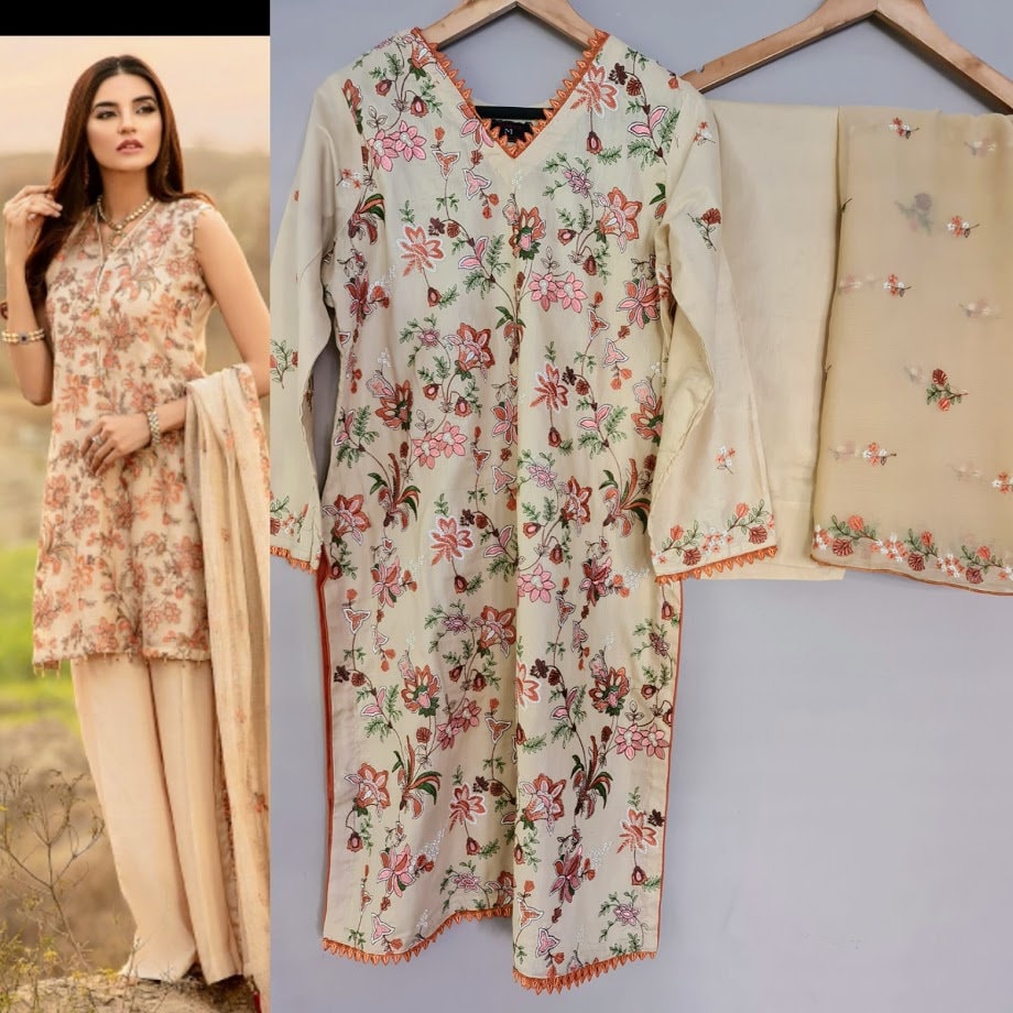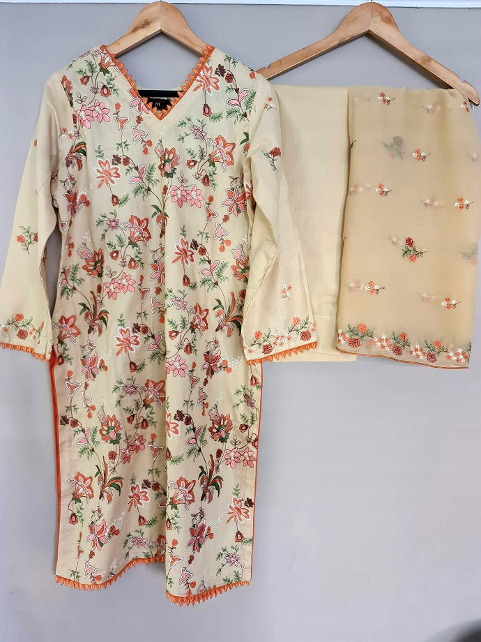 beautifully stitched PAKISTANI DRESS, embroidered kameez and scarf this indian dress is for any occassion it is readymade and available in ready to wear salwar kameez for women