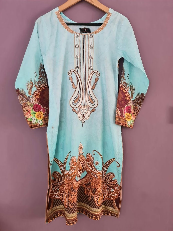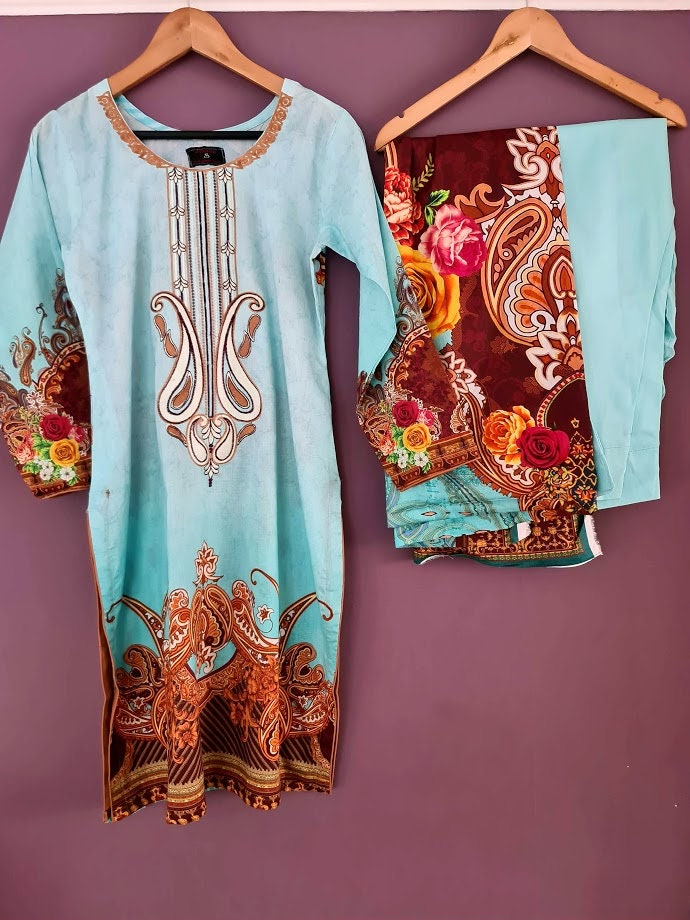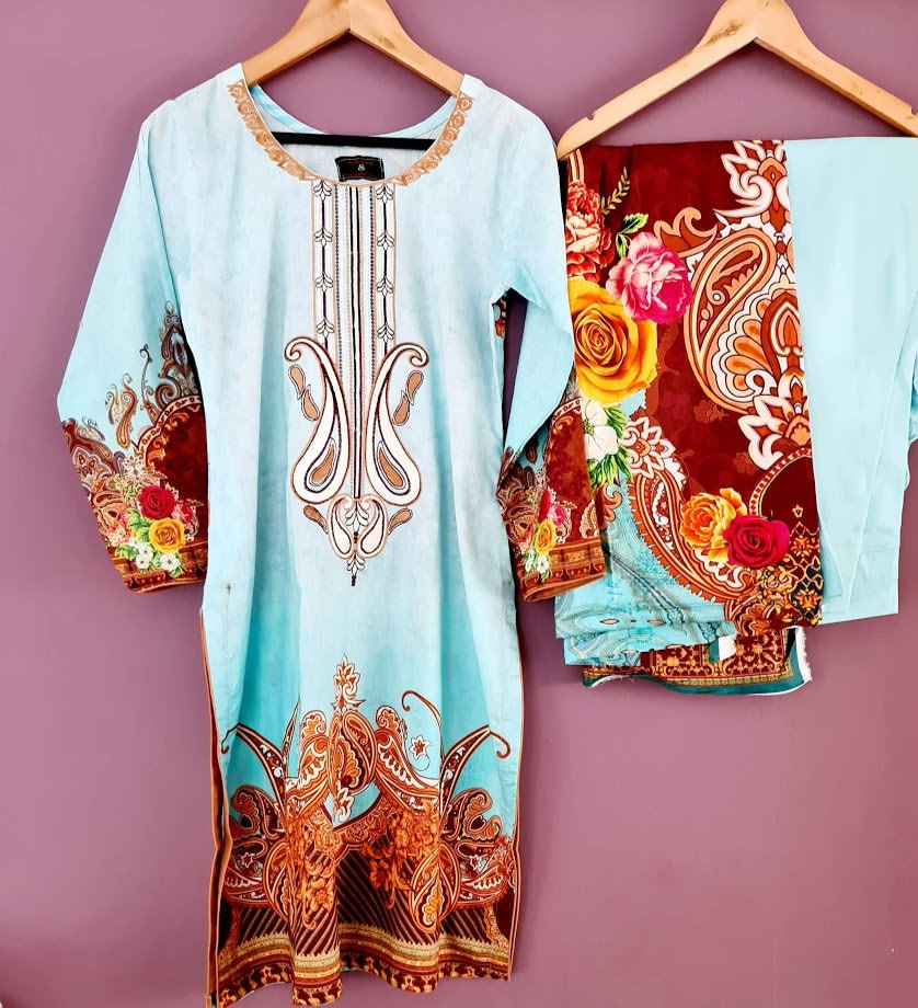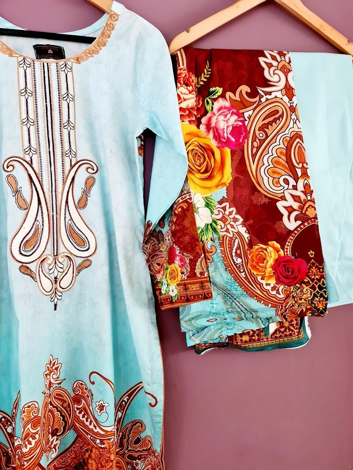 beautifully stitched Pakistani dress salwar kameez a comfortable embroidered blue lawn suit