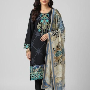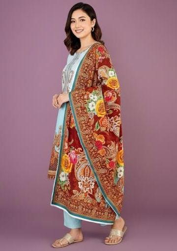 Pakistani salwar kameez Embroidered Lawn, blue , Summer Ethnic Wear printed shawl for women
