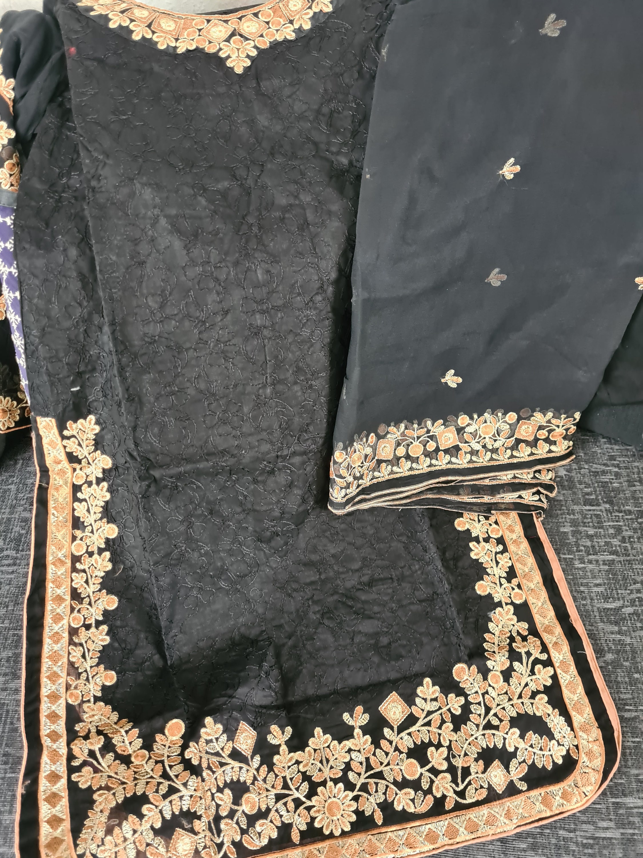 beautifully stitched indian dress ready made salwar kameez with full black thread word with kameez border embroidery