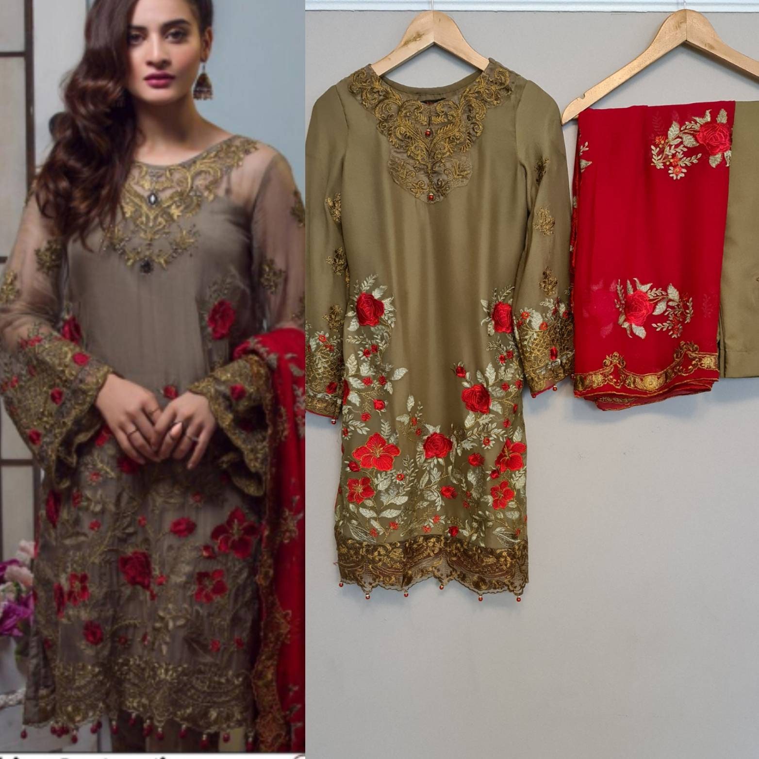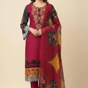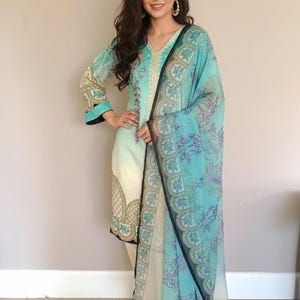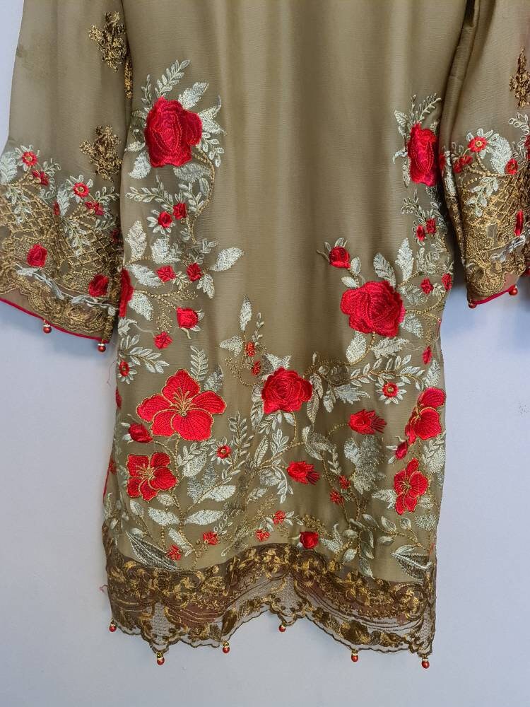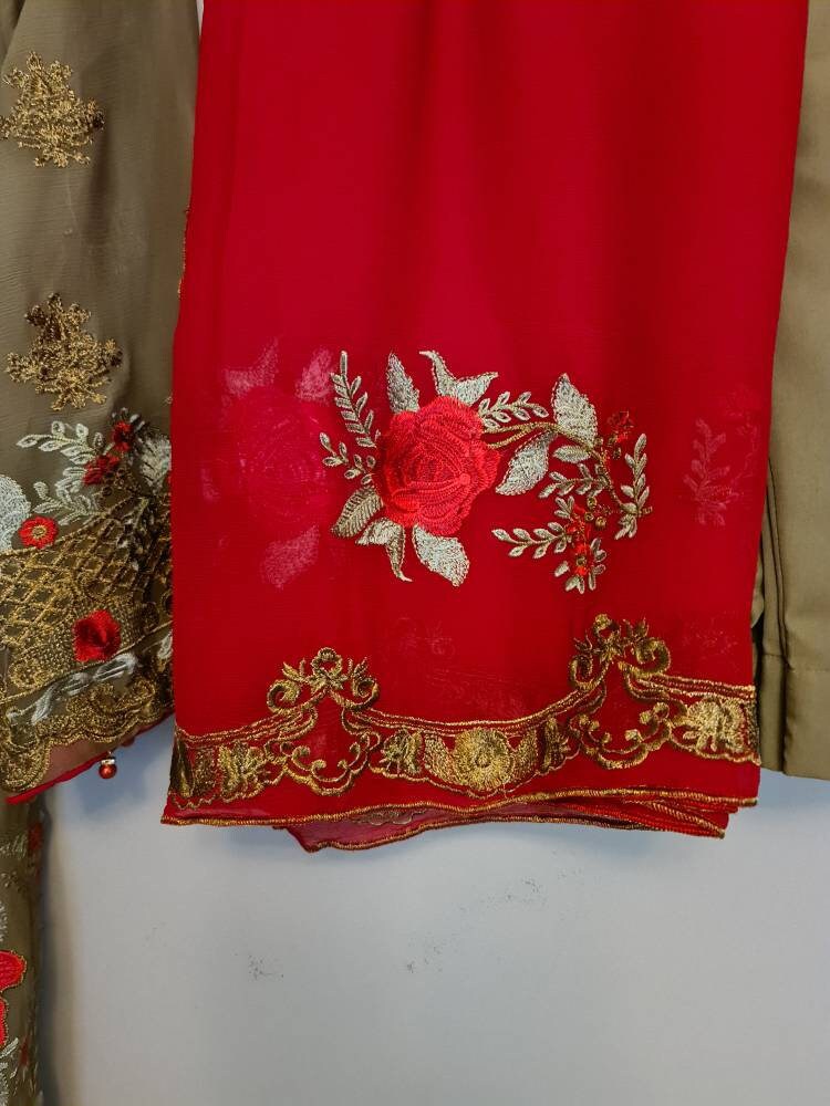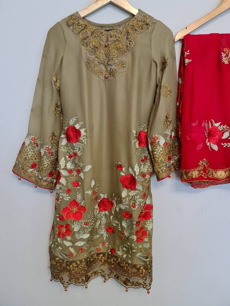 [1x Indian Salwar Kameez Chiffon Dress (1x Chiffon Embroidered Dress, 1x Dupatta Shawl, & 1x Plain Trousers]